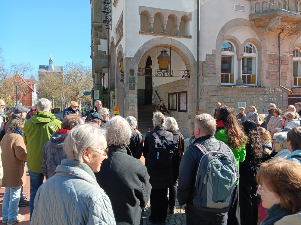 Unter großer Anteilnahme hat der Arbeitskreis Erinnerung am 18. März weiter 20 Stolpersteine in Wunstorf verlegt. Sie erinnern an MitbürgerInnen, die in der Zeit des Nationalsozialismus aus Wunstorf verschleppt und ermordet wurden. Besondere Beachtung fanden dabei die Vorträge der Urenkelin von Emil und Elfriede Kraft, Behrstock und ihrer Tochter, die extra aus New York angereist waren, sowie von Frau Roth, die den letzten Brief ihres Großvaters aus dem KZ an die Familie verlas. Eine ehemalige Nachbarin überreichte dem Arbeitskreis ein Poesiealbum von Röschen Spanier, das sich bei Aufräumarbeiten im Keller angefunden hatte. Für den November ist eine weitere Verlegung geplant.
