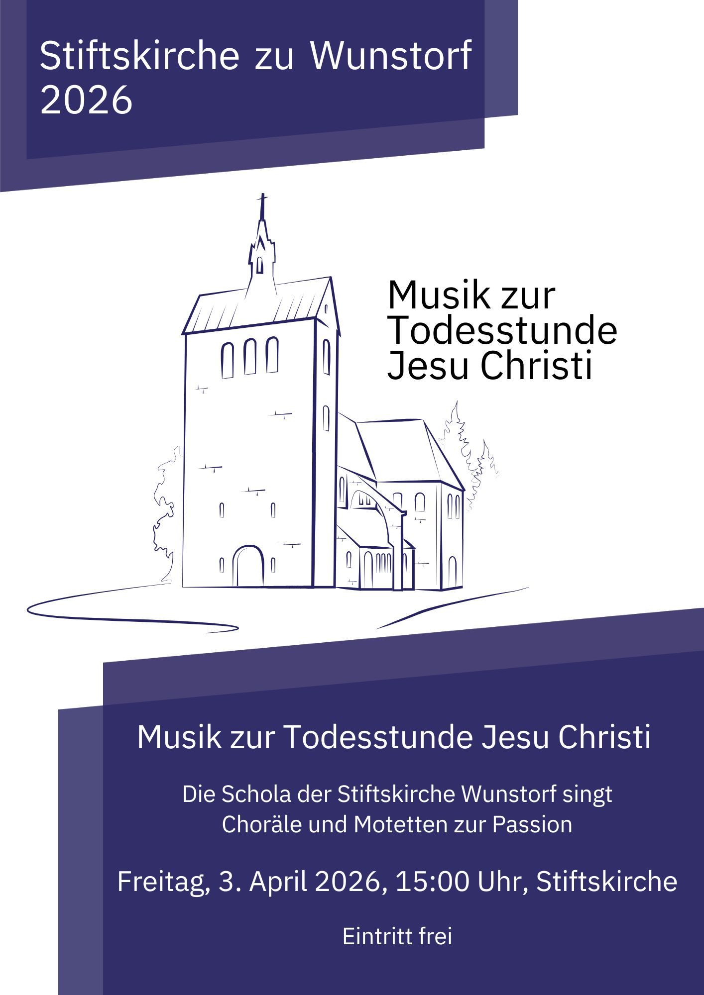 wir laden Sie herzlich zur „Musik zur Todesstunde Jesu Christi“ am Karfreitag, den 3. April 2026, um 15:00 Uhr in der Stiftskirche ein.