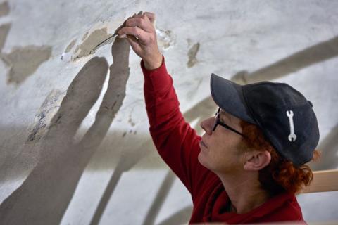 - Beispiel Wandsanierung: Die Innenwände sind in den 60er Jahren mit einer Dichtschlämme verputzt worden. Die Folge: Das Sandsteinmauerwerk zieht Wasser aus der feuchten Erde, kann es aber nicht ausreichend in die Umgebung abgeben. Das Mauerwerk nimmt Schaden. Beim Abfräsen des Putzes fand man einen Torbogen im nördlichen Seitenschiff, der offenbar den Eingang zu einem ehemaligen Kreuzgang bildete. Die Bogensteine blieben nun als Zeichen der lebendigen Baugeschichte sichtbar im Putz erhalten.