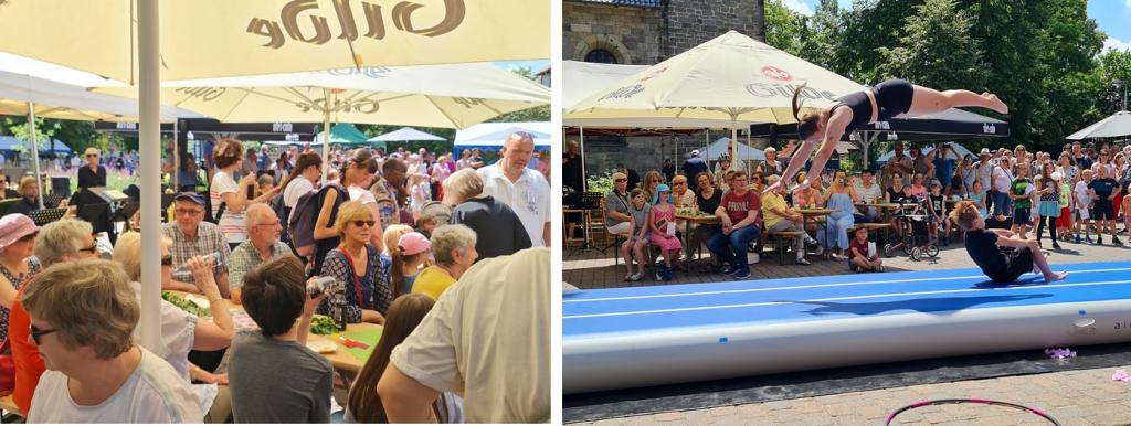 1200 Gemeindemitglieder und Gäste feiern ein rauschendes Familien-Sommerfest auf dem Stiftshügel. Bei Bilderbuchwetter herrschte dichtes Gedränge an den Ständen rund um die Stiftskirche. Tolle Musik, Show-Acts und ganz viele Aktionen für Kinder und Familien sorgten für gute Stimmung.