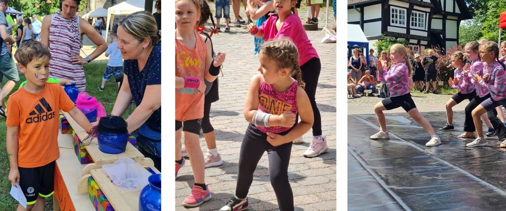 Der Bläserkreis Wunstorf, das Saxophon-Quintett um Thorsten Doll und die Big Band der Wunstorfer Musikschule verzauberten die Gäste mit sommerlichen Klängen. Mit vielen Aktionen zum Mitmachen hatte die Stiftsgemeinde sich besonders auf Familien mit Kindern eingestellt: Ob Schwimmkerzen gießen, Saatbomben herstellen, Traumfänger oder Schlüsselanhänger basteln und dazu Kinderschminken und Glitzertattoo – da war für jeden etwas dabei. Beliebt auch der Spieleteppich mit den bunten Legokisten und das Stockbrotbacken mit den Pfadfindern. Und beim Entenangeln konnte jeder Popcorn und Zuckerwatte gewinnen. Höhepunkt für viele war das Ponyreiten. Die Reit-Gemeinschaft Heidorn war gleich mit vier Pferden gekommen.