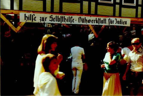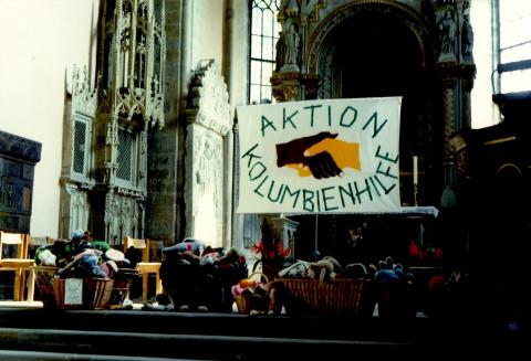 Von Anfang an war es Frau Albrecht wichtig, nicht nur zu reden, sondern auch zu handeln. So engagierte sich die Gruppe bei der Lebenshilfe, veranstaltete bei den Altstadtfesten Flohmärkte zusammen mit Frauen der katholischen Kirchengemeinde St. Bonifatius, deren Erlös ein Projekt „Webstühle und Nähmaschinen für Indien“ unterstützte. Seit 1986 förderte der Frauenkreis die „Kolumbienhilfe“ , eine private Initiative, die sich um Menschen in einem Elendsviertel in Cali, der drittgrößten Stadt Kolumbiens, kümmert. Es wurden nicht nur Spenden gesammelt, sondern auch persönliche Patenschaften für sehr arme Familien übernommen. Dieser Austausch hat uns sehr geprägt und bereichert.