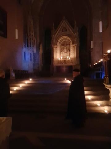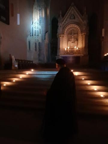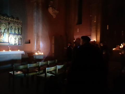 Eine besondere Führung wird anl. des Stifts- und Stadtjubiläums in der renovierten Stiftskirche angeboten: bei Kerzenschein und „Alter Musik“ wird die Geschichte der mittelalterlichen Kirche , das Leben in der Zeit von Äbtissin Jutta und die besondere Stimmung durch zeitgenössischen Gesang erlebt. Wenn vom Kirchturm der Stiftskirche die Uhr neun Mal schlägt, öffnet sich das Südportal der Stiftskirche . Einst trafen sich die Konventualinnen und die Kanoniker zu einer ihrer Horen, jetzt, zum Komplet, dem Nachtgebet. Äbtissin Jutta empfängt ausnahmsweise Gäste in ihrer alten Welt, um Ihnen die Stiftkirche zu zeigen und zu erklären. Nach einführenden Worten zum Stift, seiner Gründung und warum das Stift in Wunstorf an dieser Stelle errichtet wurde, geht es durch die stimmungsvoll beleuchtete Kirche. Von Zeit zu Zeit begleitet die Schola der Stiftskirche unter der Leitung der Kantorin Claudia Wortmann die Führung. Dann werden die Besucher durch mystischem Gesang empfangen. Der Rundgang in der spärlich beleuchteten Kirche verspricht einen besonderen Reiz. Zum Abschluss erstrahlt die Kirche dann noch einmal in hellem Licht. Die Führung endet, wie es in der Kirche üblich ist, mit einem besonderen Gebet.