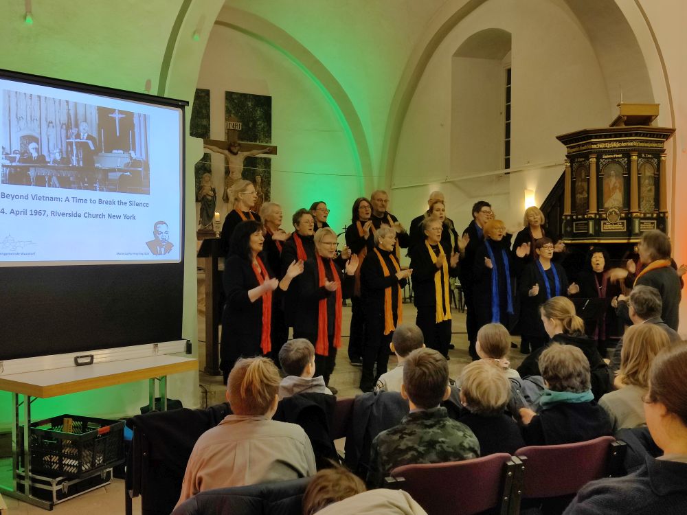 120 Gäste diskutierten angeregt über Gerechtigkeit und gewaltlosen Protest. In einem Gottesdienst zum Martin Luther King Day stand diesmal Rosa Parks und der Montgomery Busboykott im Zentrum. Vor 70 Jahren wurde mit nur 25 Jahren Martin Luther King zum Anführer der Bürgerrechtsbewegung in Amerika. Der Gospelchor Kum Ba Yah sorgte mit Negro Spirituals für die passende Atmosphäre.