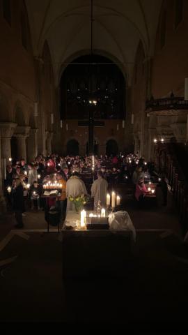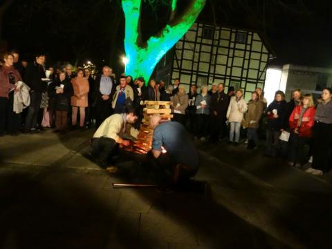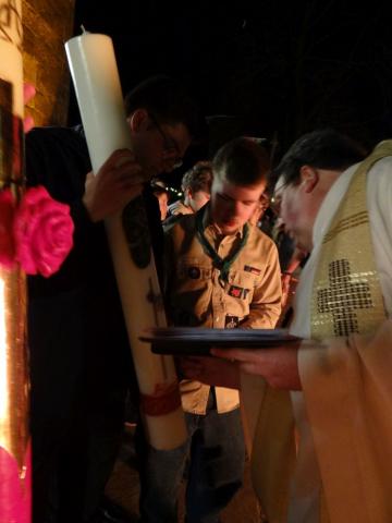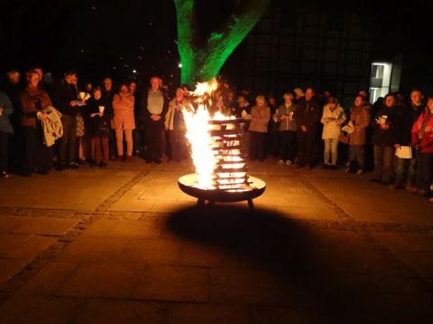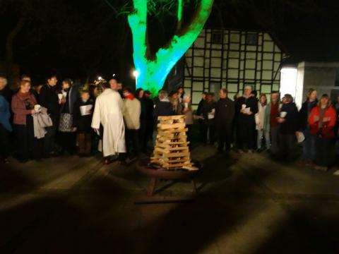 Im Anschluss an den Gottesdienst gab es noch Raum zur Begegnung. Dazu hatten die Pfadfinder aus St. Bonifatius seit dem frühen Nachmittag vor der Kirche ein Osterlamm über dem offenen Feuer gebraten. An den Tischen im Gemeindehaus war man sich einig: "So gut, wie in diesem Jahr ist es schon lange nicht mehr gelungen!"
