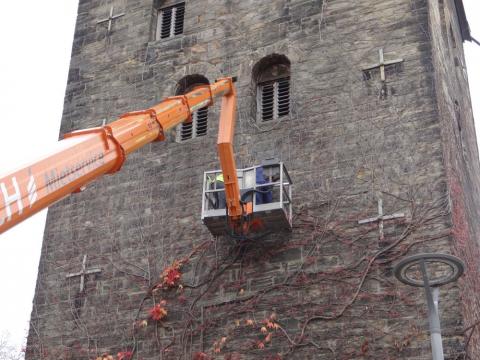 Alle Kreuzanker werden ausgetauscht, um sowohl die Sicherheit von Menschen, als auch des Turmes zu gewährkeisten. Dazu wird (Stand 03.11.) der Turm eingerüstet und mit Netzen ausgestattet. Die weiteren Maßnahmen werden mit Stadt, Landeskirchenamt und Kirchenkreis abgestimmt.
