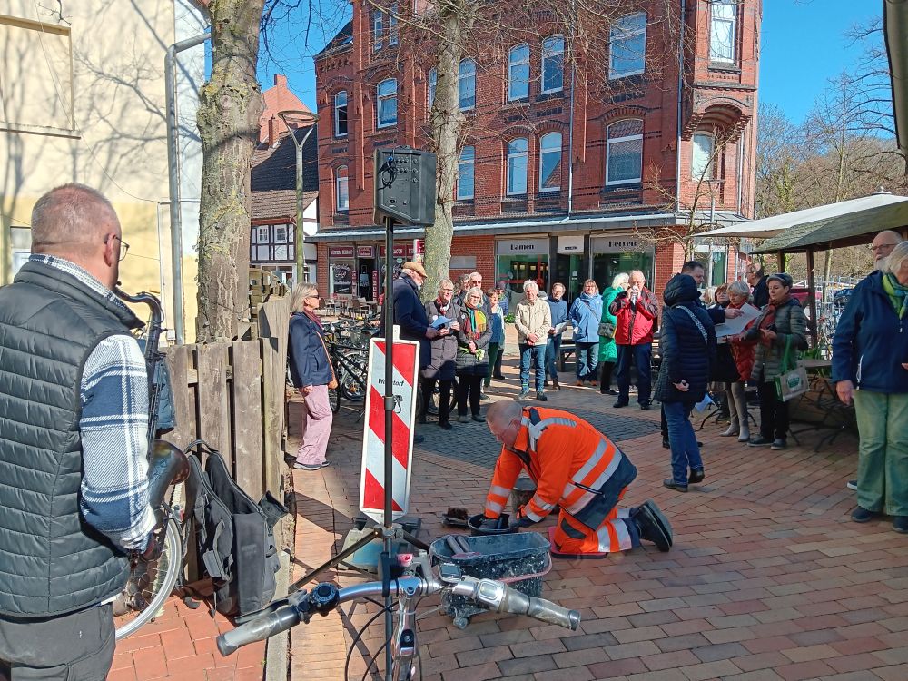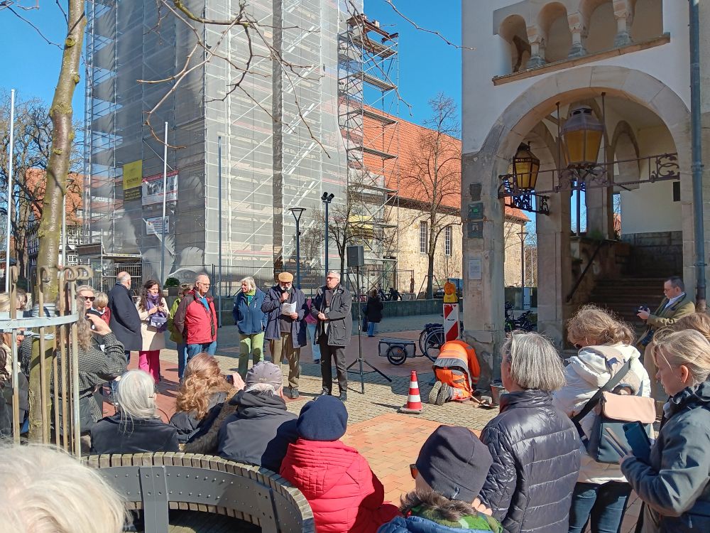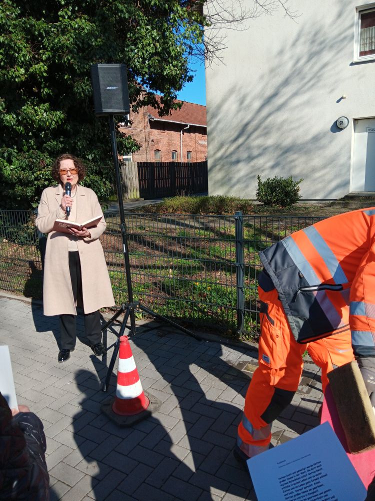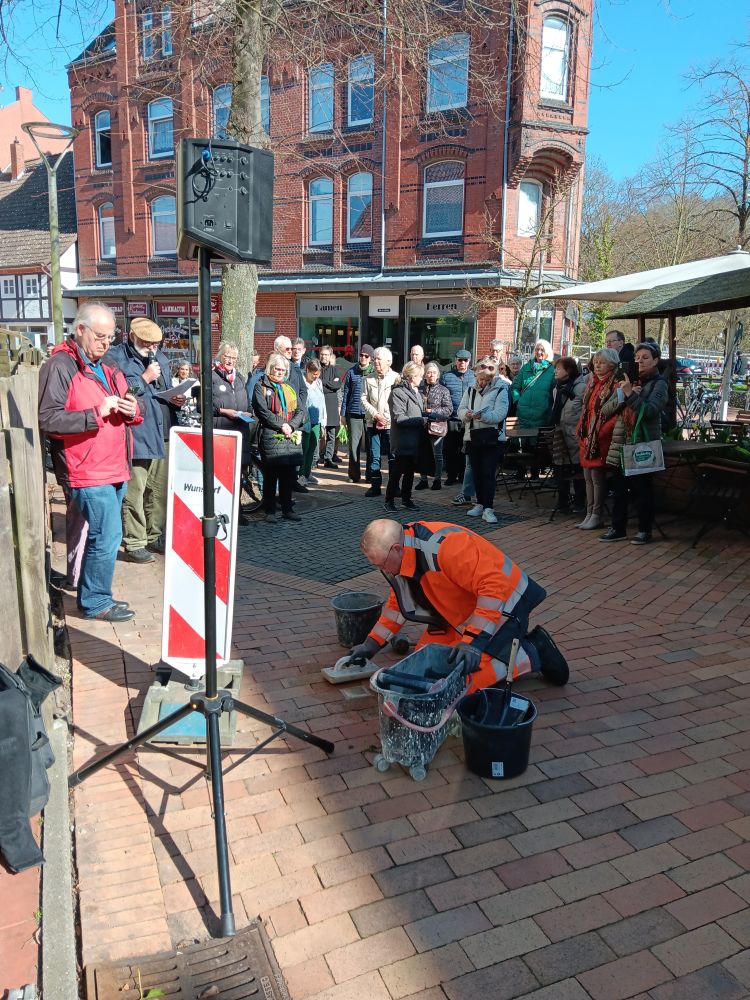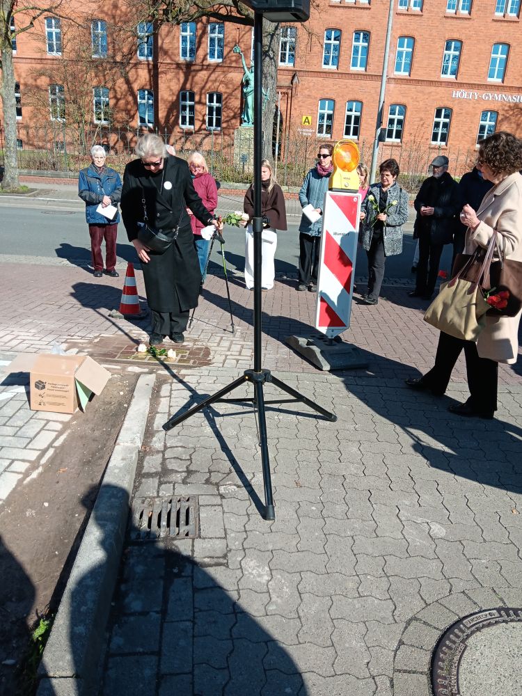 Unter großer Anteilnahme hat der Arbeitskreis Erinnerung am 18. März weiter 20 Stolpersteine in Wunstorf verlegt. Sie erinnern an MitbürgerInnen, die in der Zeit des Nationalsozialismus aus Wunstorf verschleppt und ermordet wurden. Besondere Beachtung fanden dabei die Vorträge der Urenkelin von Emil und Elfriede Kraft, Behrstock und ihrer Tochter, die extra aus New York angereist waren, sowie von Frau Roth, die den letzten Brief ihres Großvaters aus dem KZ an die Familie verlas. Eine ehemalige Nachbarin überreichte dem Arbeitskreis ein Poesiealbum von Röschen Spanier, das sich bei Aufräumarbeiten im Keller angefunden hatte. Für den November ist eine weitere Verlegung geplant.